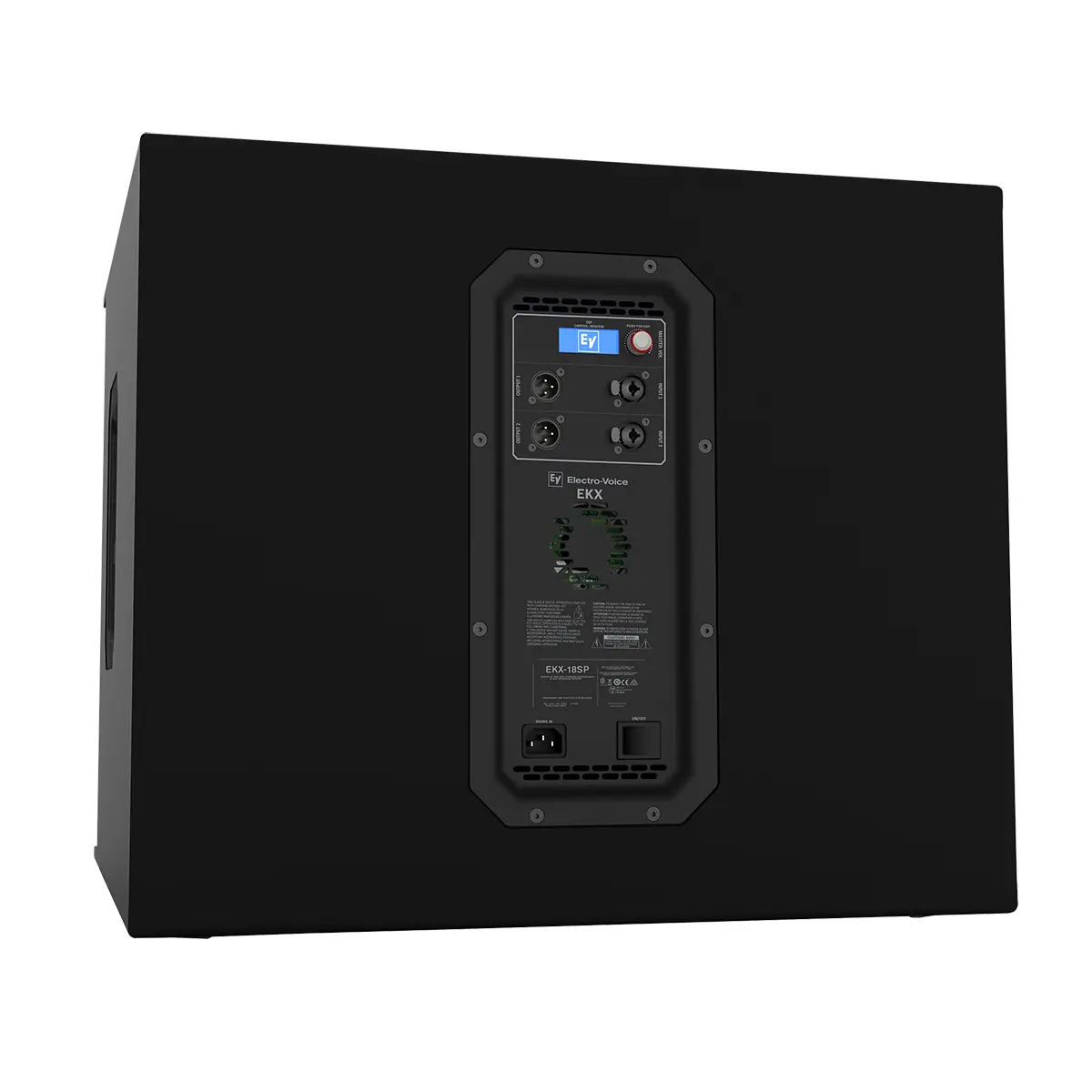 Un sistema inteligente de gestión térmica ajusta automáticamente el ventilador de velocidad variable mediante sensores integrados. Con dos salidas XLR, puede integrar fácilmente el EKX-18SP con altavoces y subwoofers adicionales. El subwoofer cuenta con amplios puertos de ranura para facilitar la baja distorsión y la extensión de bajas frecuencias, así como una barra de refuerzo de rejilla metálica y una placa de montaje en poste con rosca M20.