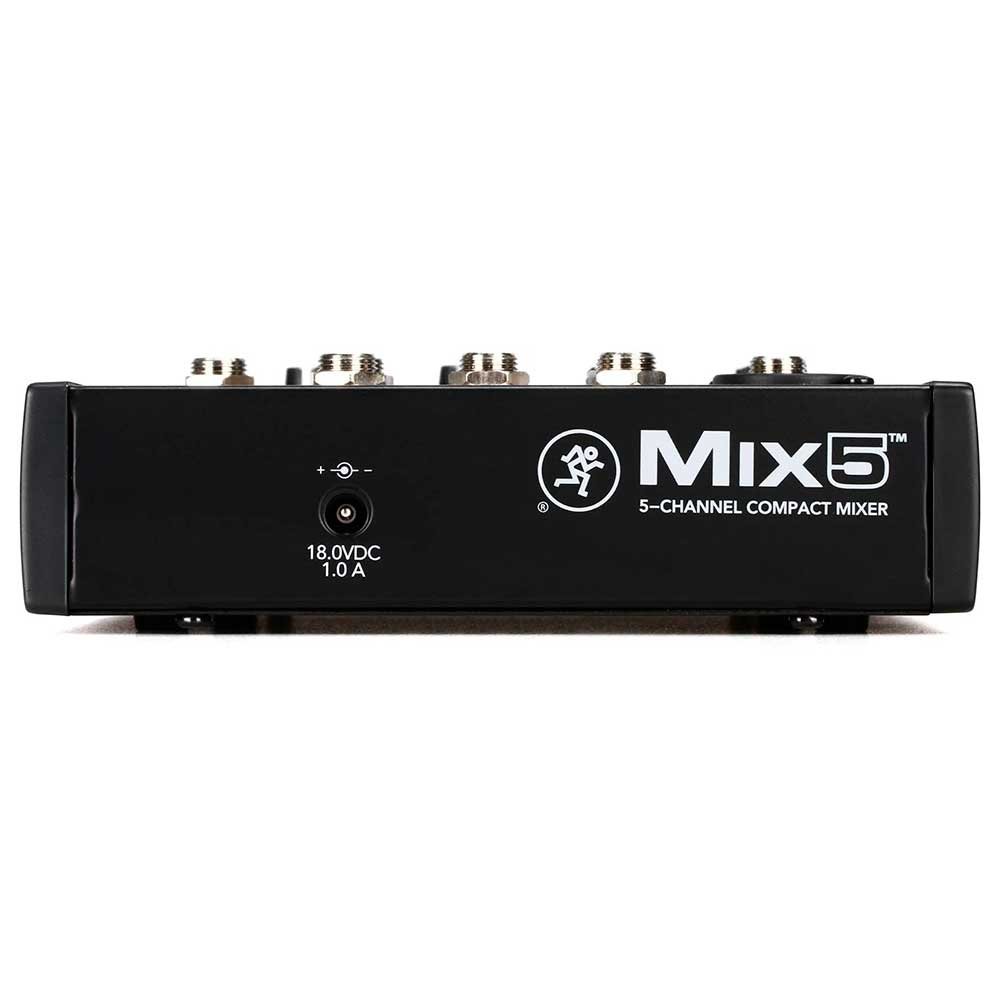 La Mackie Mix5 incluye conexiones prácticas para setups básicos: