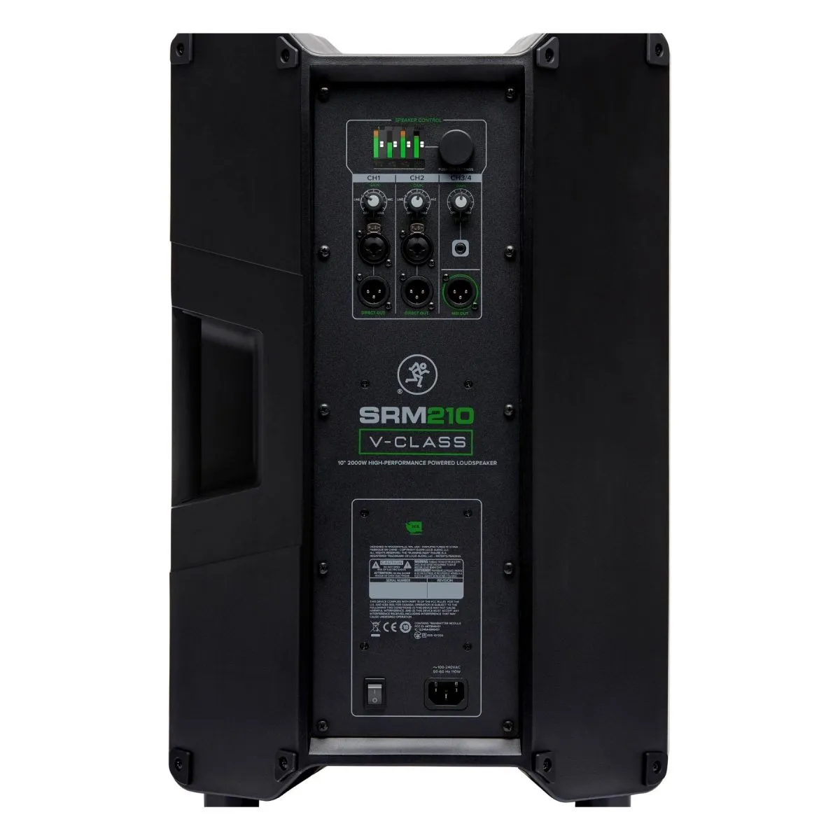 El Mackie SRM210 V-Class incorpora un amplificador clase D de 2000W, diseñado para ofrecer presión sonora alta sin perder definición.