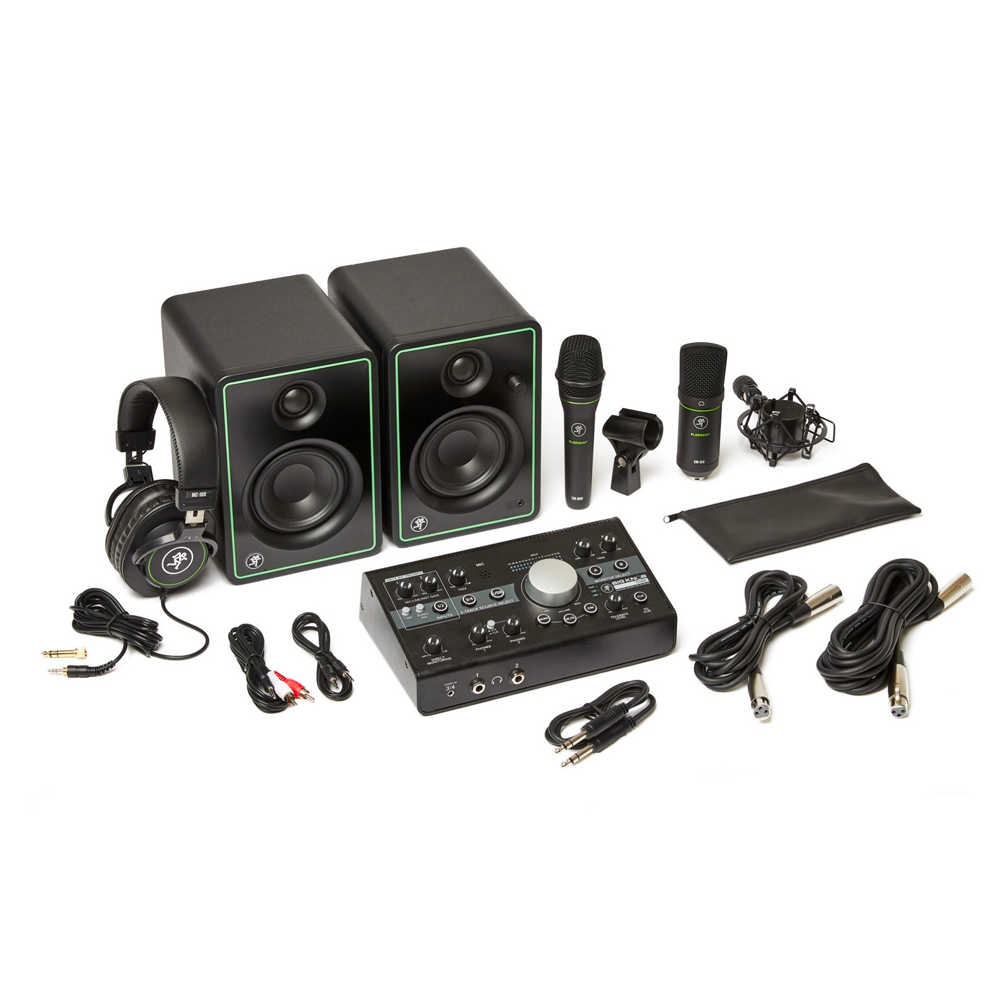 Mackie Studio Bundle es un kit completo de grabación profesional diseñado para home studio que incluye interfaz, controlador de monitores, micrófonos, audífonos y monitores de estudio. Es ideal para músicos, productores y creadores que quieren un sistema completo desde el primer día.