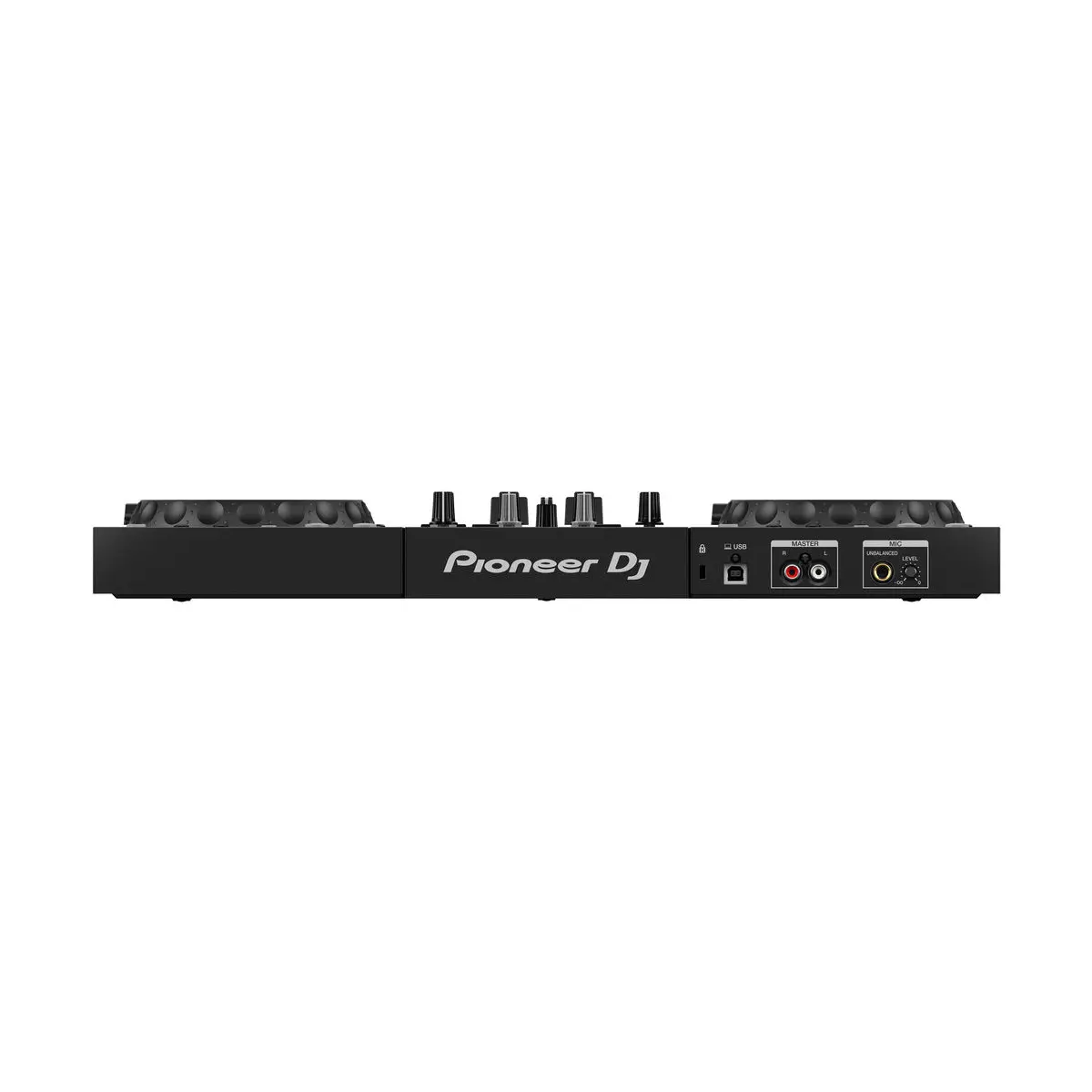 Aplica Beat FX profesionales que se adaptan al tempo de la pista para lograr transiciones únicas y mezclas creativas. Los 16 pads de rendimiento (8 por deck) ofrecen funciones Hot Cue, Beat Loop, Beat Jump y Sampler, además de los modos Keyboard, Key Shift y Pad FX. El panel central del DDJ-400 es un mezclador de 2 canales con tarjeta de sonido integrada. Cada canal cuenta con un trim, un ecualizador de 3 bandas, un filtro Sound Color bidireccional (HP/LP) y un fader de nivel. El Pioneer DDJ-400 se alimenta por bus e incluye un cable USB.