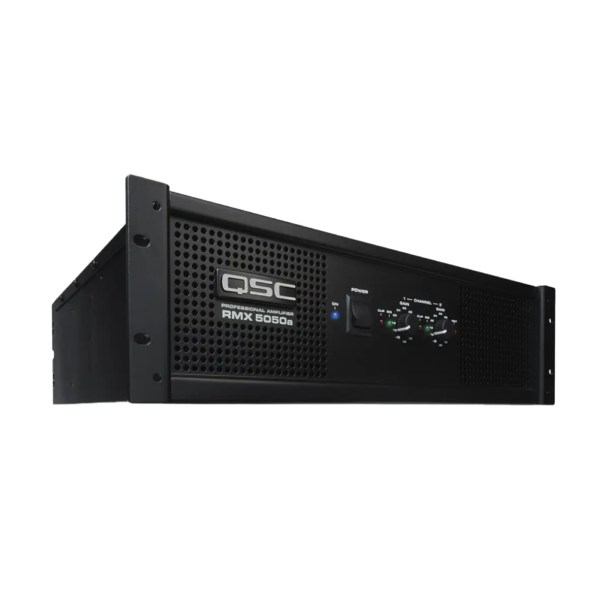 El amplificador de potencia profesional QSC RMX5050a de 5000 W es una unidad de 3RU diseñada para aplicaciones de refuerzo de sonido en vivo de alta potencia. El amplificador puede funcionar en modo estéreo, mono dual o mono puenteado, y admite impedancias de salida de entre 2 y 8 ohmios. La unidad tiene una potencia nominal de 1100 W por canal a 8 ohmios entre 20 y 20 000 Hz, 1800 W por canal a 4 ohmios entre 20 y 20 000 Hz, 2500 W por canal a 2 ohmios entre 20 y 20 000 Hz, y 3600 W a 8 ohmios en modo mono puenteado entre 20 y 20 000 Hz. El amplificador utiliza transformadores toroidales de alta corriente para obtener mayor potencia y menor ruido al alimentar cargas de 2 ohmios.