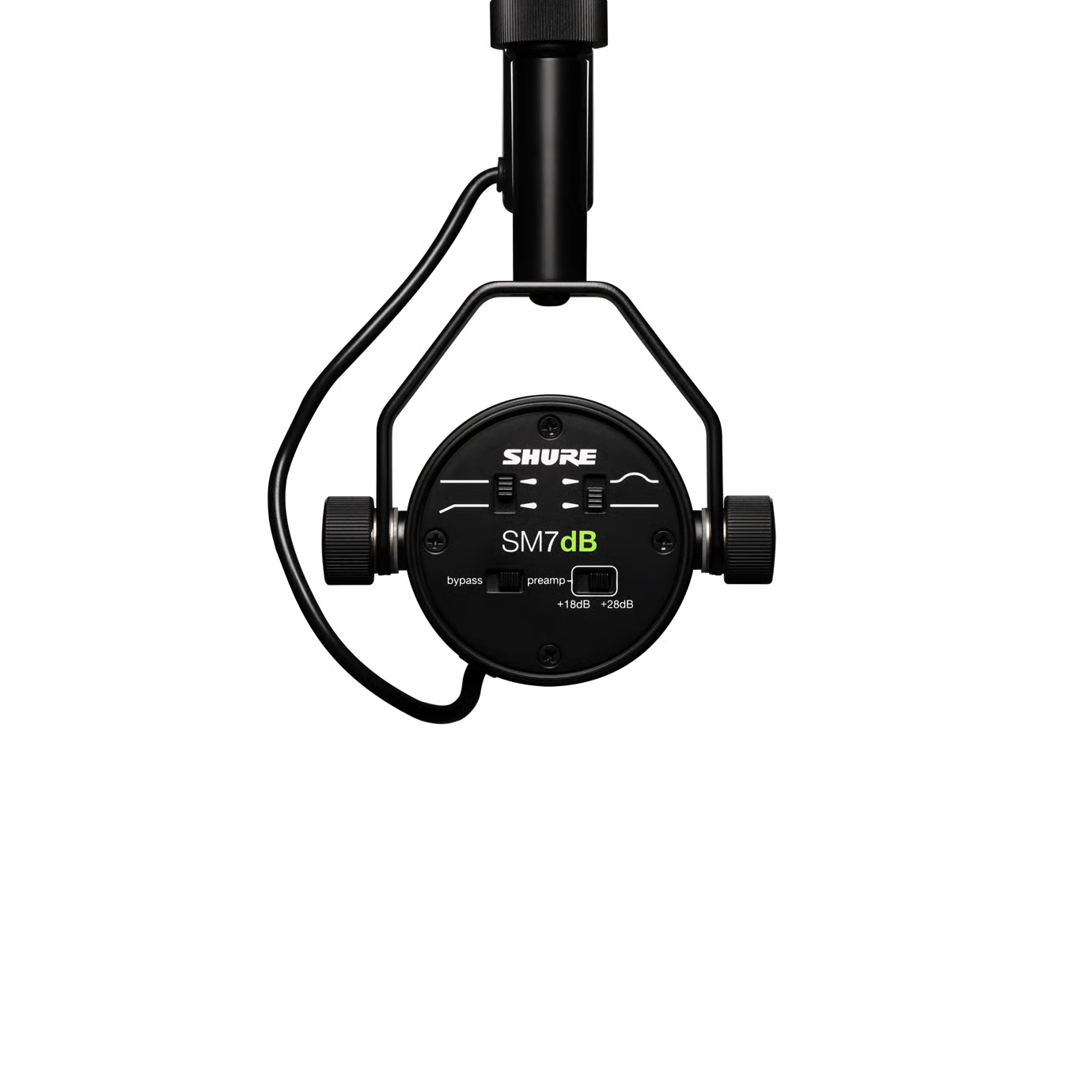 El Shure SM7DB mantiene el carácter sonoro que hizo famoso al SM7B: un audio cálido, definido y controlado.