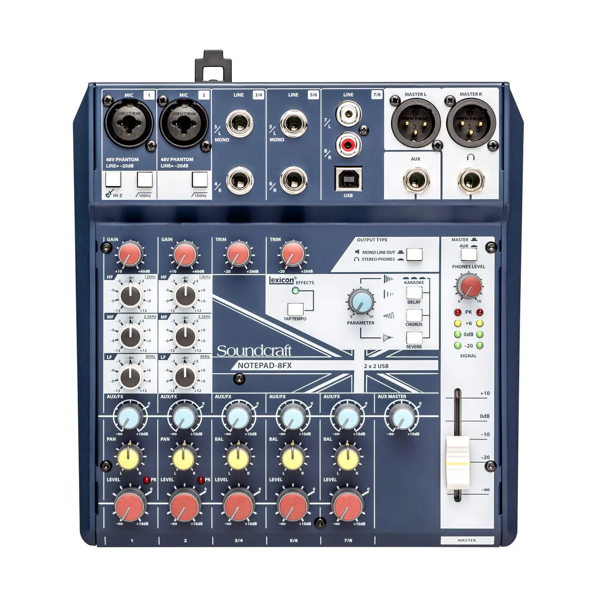 El Notepad-8FX incluye efectos premium con calidad de estudio de Lexicon que te ayudan a lograr un sonido verdaderamente profesional sin necesidad de plugins ni equipos adicionales. Mejora tus proyectos con reverberación, chorus o delay con control de tap tempo, respaldados por la tecnología de procesamiento de señal líder en la industria integrada en el motor DSP del Notepad.
