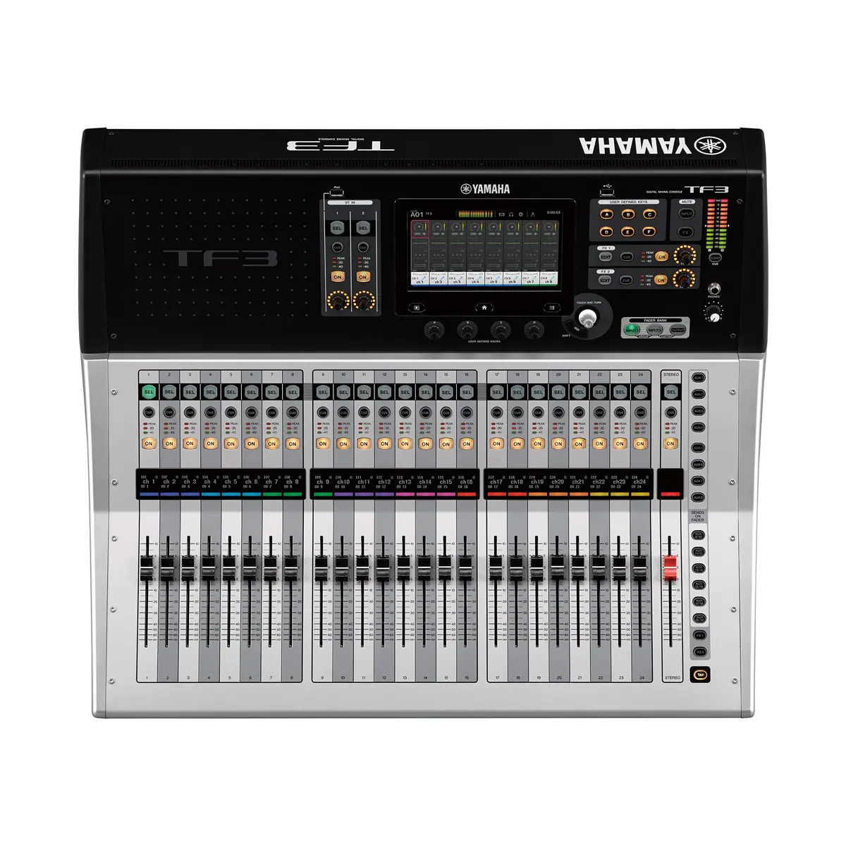 La Yamaha TF3 es una consola de mezcla de audio digital para montaje en rack que cuenta con una pantalla táctil, 25 faders motorizados y es ampliable hasta 48 canales de entrada mediante el rack de E/S Tio1608-D opcional. Ideal para una gran variedad de escenarios de refuerzo de sonido en vivo, la Yamaha TF3 también se puede utilizar para grabación en directo, ofreciendo grabación y reproducción digital de 34 x 34 canales mediante USB 2.0 con un ordenador y su software DAW preferido, y grabación y reproducción de 2 x 2 canales con cualquier dispositivo de almacenamiento USB.